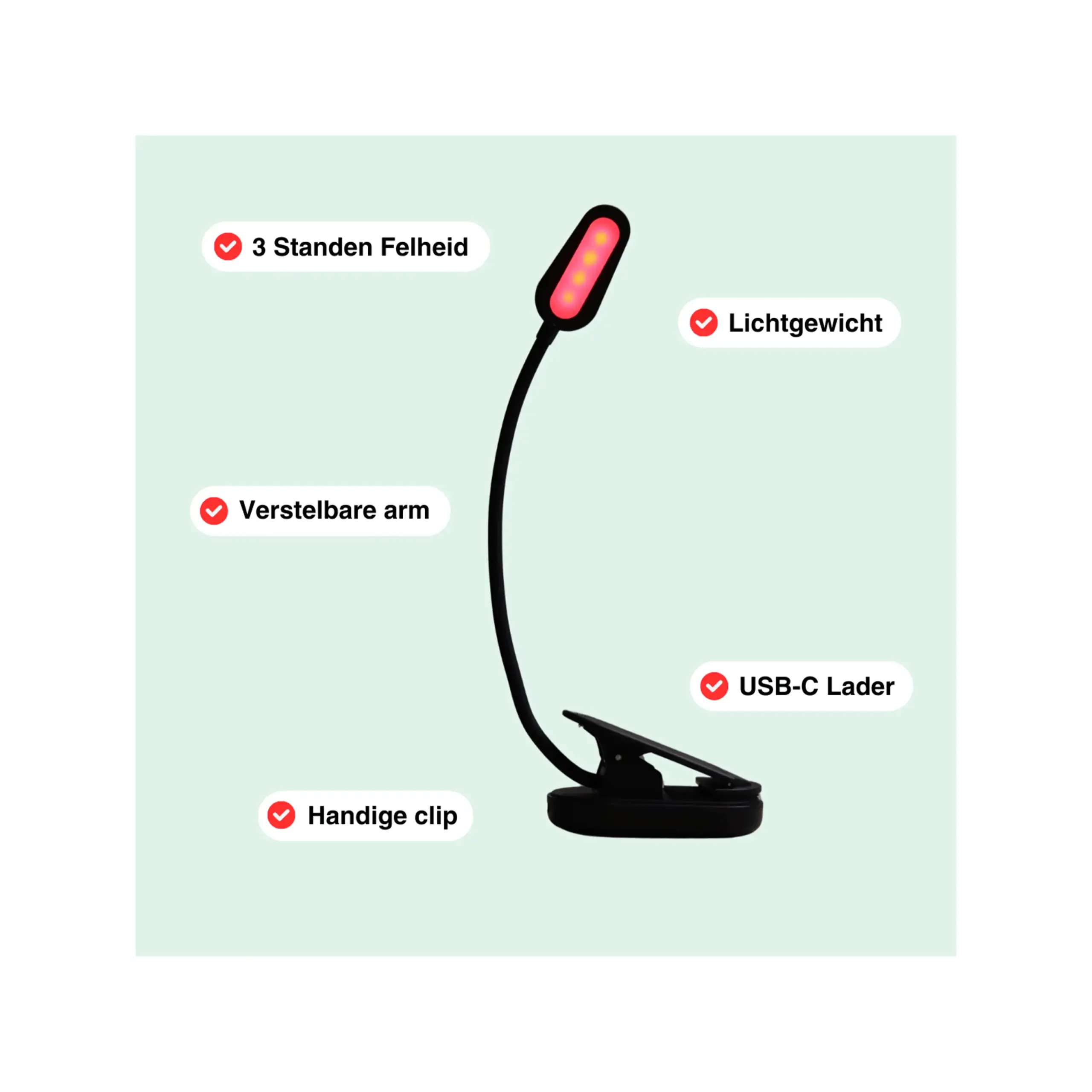 Dankzij de verstelbare klem ideaal voor een nachtkastje, boek of bureau. Kies uit drie lichtstanden voor precies de juiste verlichting.